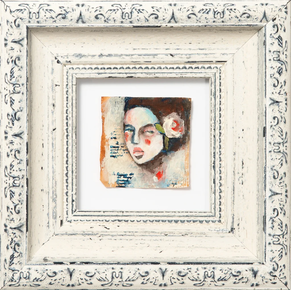 I sent her back to the framers for reframing. We hand picked this beautiful frame for her because I wanted her to be honoured for everything that she has represented for me this year. She became the face of TinyBagsofLove and she has been one of my favourite pieces from this years #1FaceADay challenge on TeaBags.