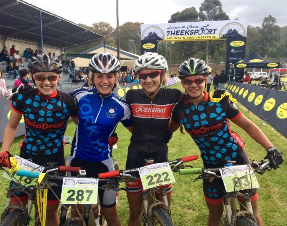 We headed out early on Saturday morning for the start and the nerves were on edge. I sat in the car typing my blurb for the Triumph and Survival Auction Introduction while we found our way there. I had forgotten how special the start was. It was opposite an old mission church, a bit run down but still beautiful. The bells rang throughout the start adding much excitement. When Corks got to the start shoots her number board wasn't on and she was denied access, she had to perform some fancy footwork to get back on track which left her in adrenaline overload. Not a great way to start her race. All in all, it was a mighty race for these four young ladies. I do believe it was one of the most competitive races yet. They all finished together over the finish line after racing their hearts out for 40km's, with seconds between them.