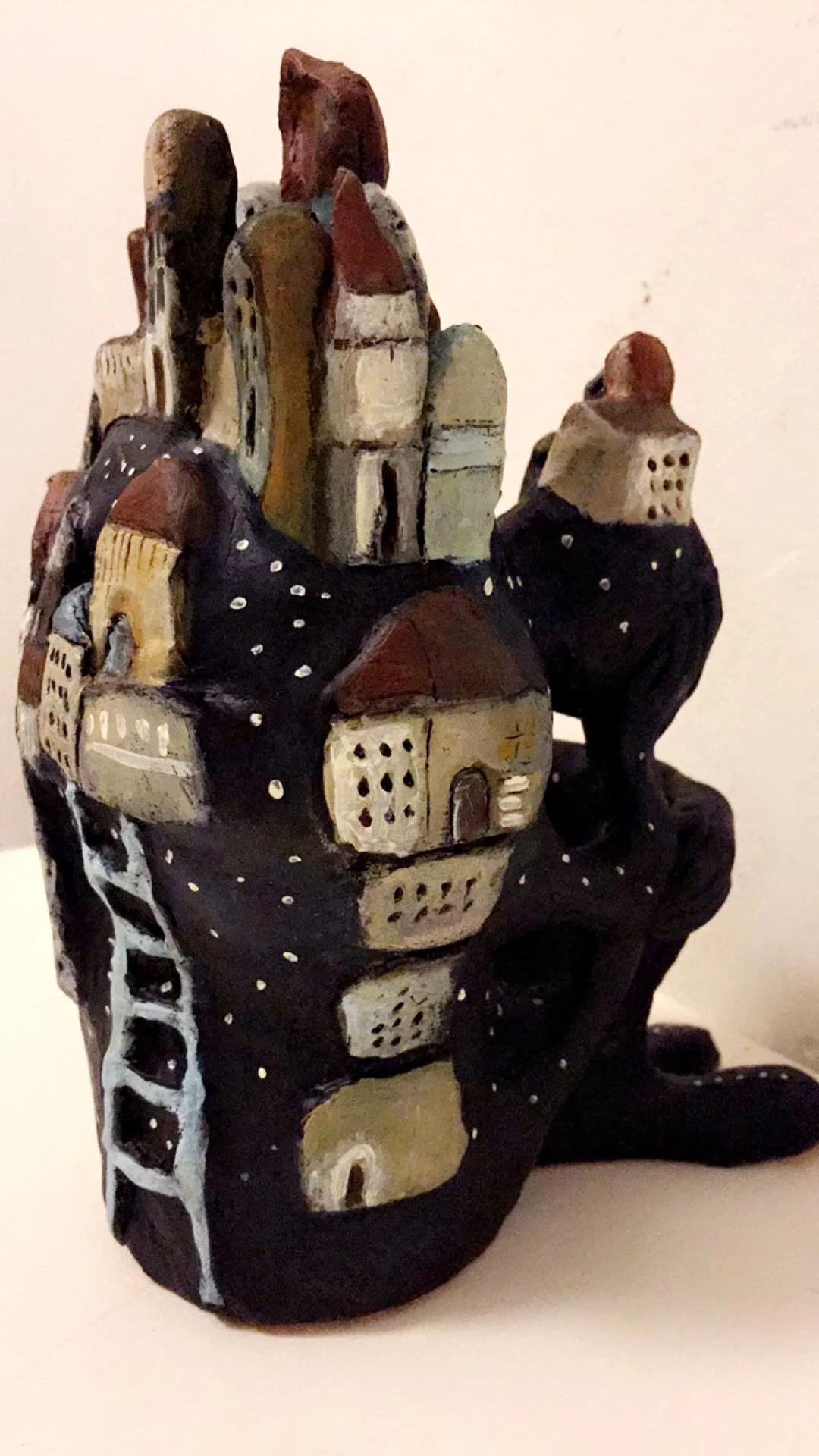 I'm thrilled to say I'm finished this beautiful girl and I'm besotted with her. Her buildings remind me of Orvieto, Italy. My favourite is her profile view and her 3D buildings from all angles.