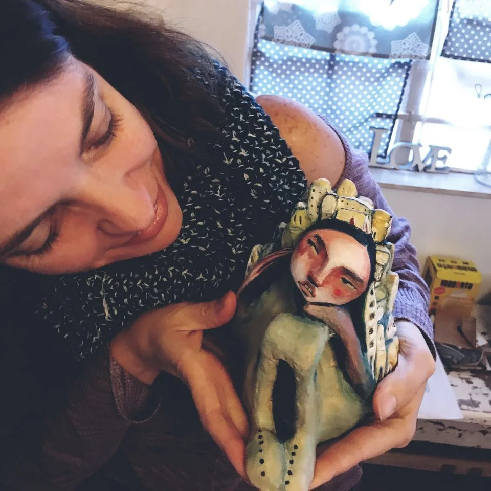 I love how she's looking at me and of course I love her mouth. I've been working on this skill. I love her buildings and the stories they hold... there is history in her body and buildings and face. We continue to journey together as we find our way with her paint colors.