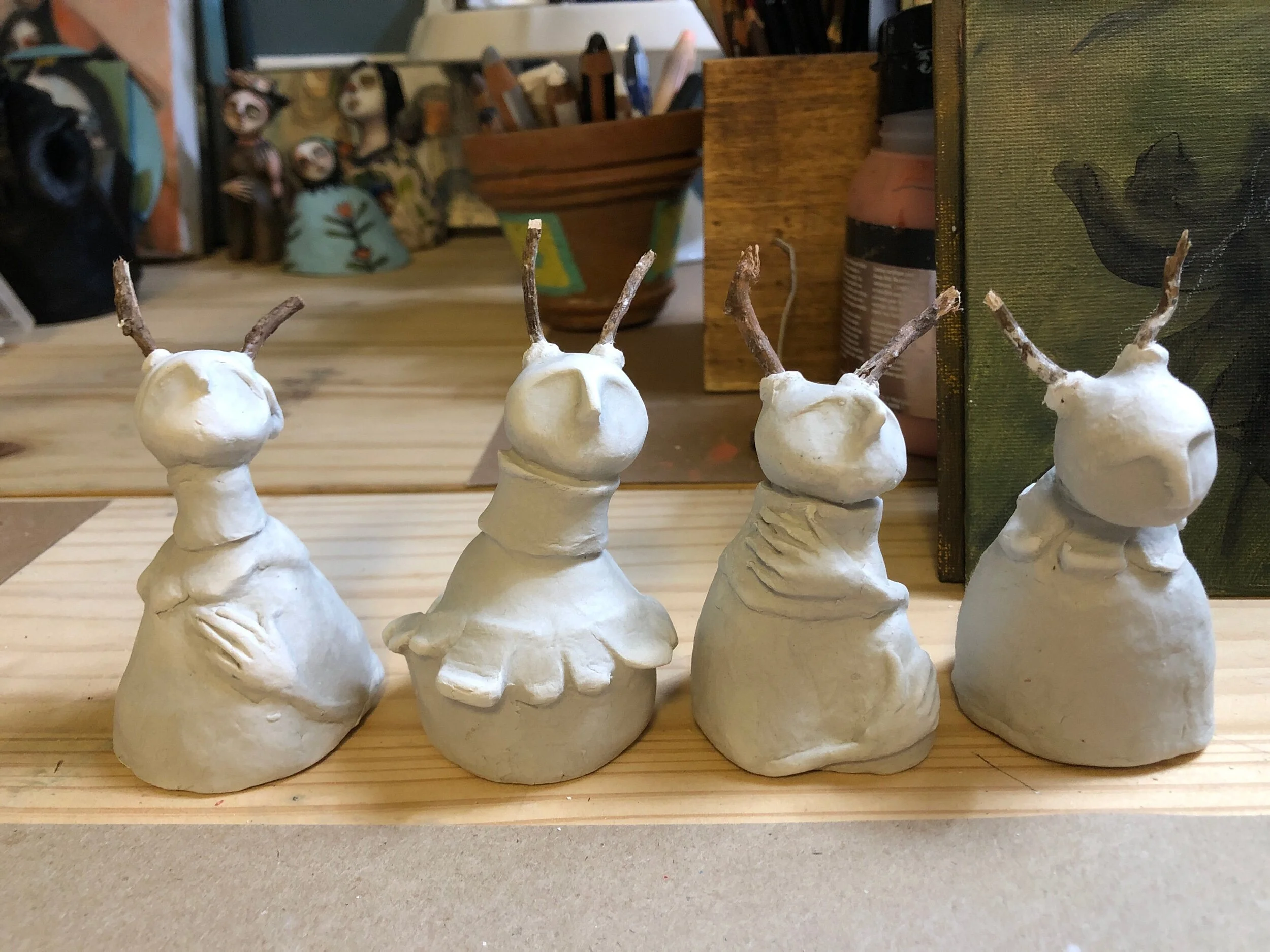 These tiny beings happened quickly and easily and seemed to flow right out of my hands. Their tender expressions and soft dispositions warmed my heart and I really can’t wait to paint them. I have some ideas... I hope that part will be as enjoyable and flow out of my brushes too.