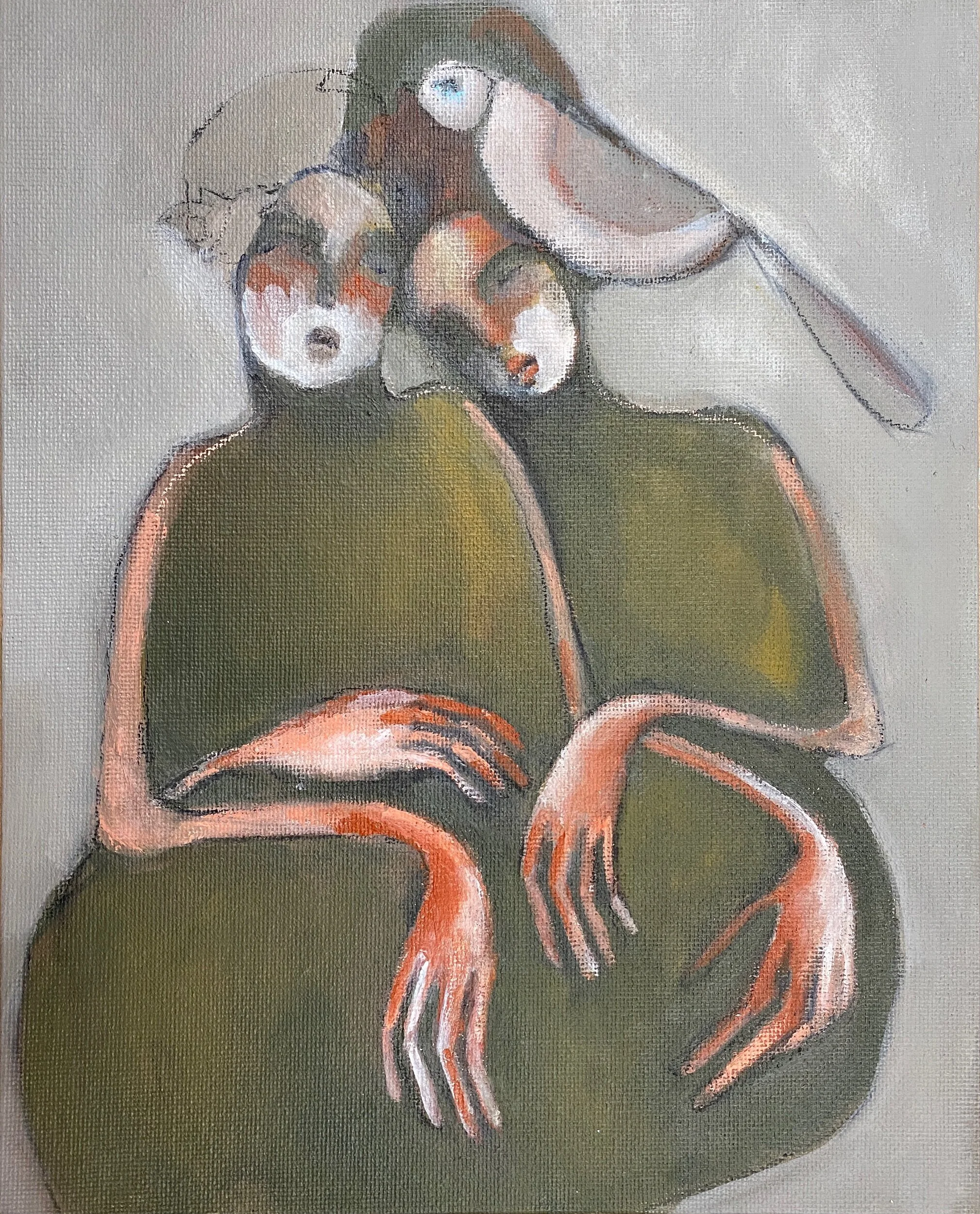 I had these mini 4”x4” canvases lying on my desk since last year and I thought this would be a sweet way to get my brushes moving again and it was. The two paintings below are pieces I had drawn up last year and finally getting to work on now. This past week I did take stock of my all my unfinished works and I was a bit surprised to find 7 unfinished paintings, 9 unfinished clay works and 3 sets of earrings. That’s a bit much, even for me. I did have a good chuckle to myself… I have some work to do.