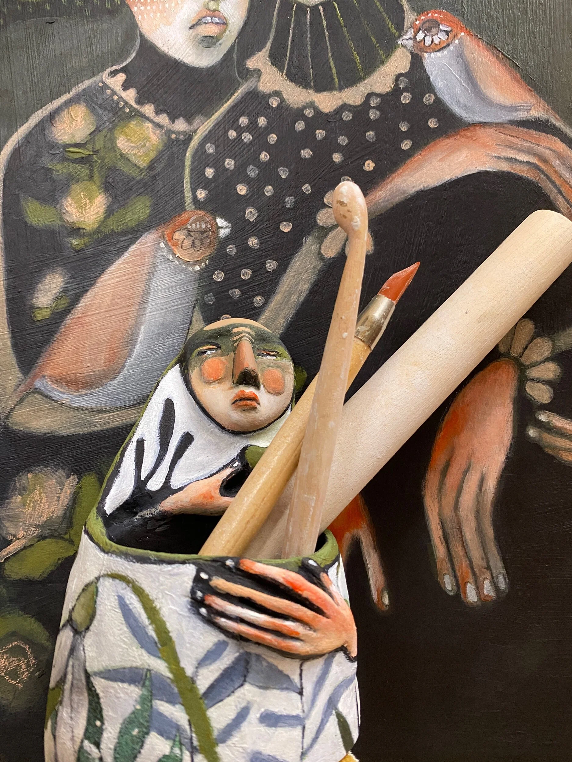 She holds my clay tools perfectly and she has a beautiful sacredness to her too… an almost Madonna feel to her. I have loved seeing this theme come out in my pieces this season.