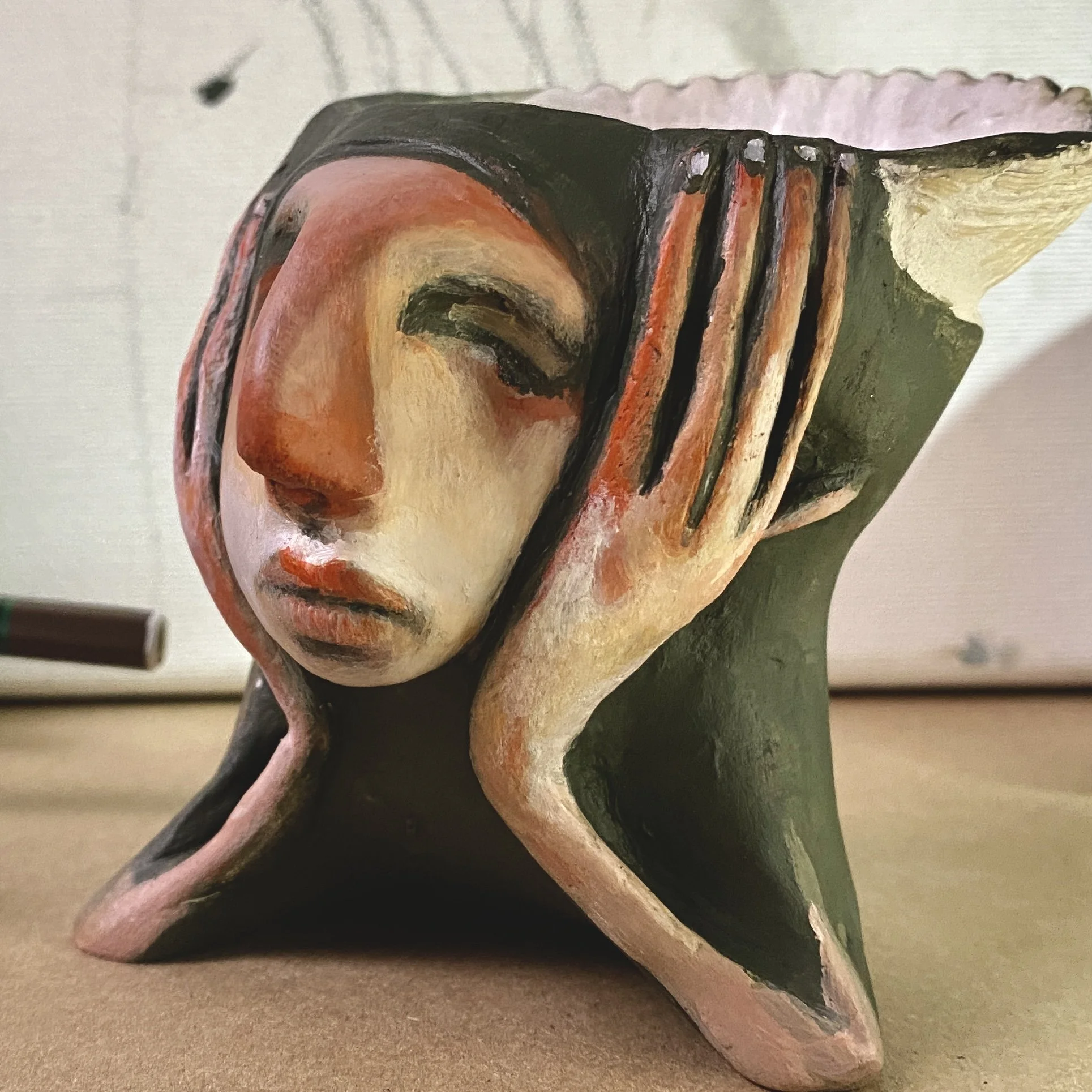 I am including painting clay into my #30days of painting and to be honest I haven’t painted clay for around 6 months and I was a little nervous but the love returned in an instant. I can’t wait to finish her.